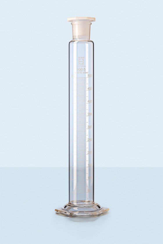 - - DURAN Mixing cylinder, hexagonal base, graduation, NS 10/19, plastic stopper, 10 ml packing of 2