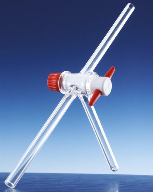 - - DURAN Three-way stopcocks, T-bore 2,5 mm, NS 18.8, complete with PTFE-key packing of 5
