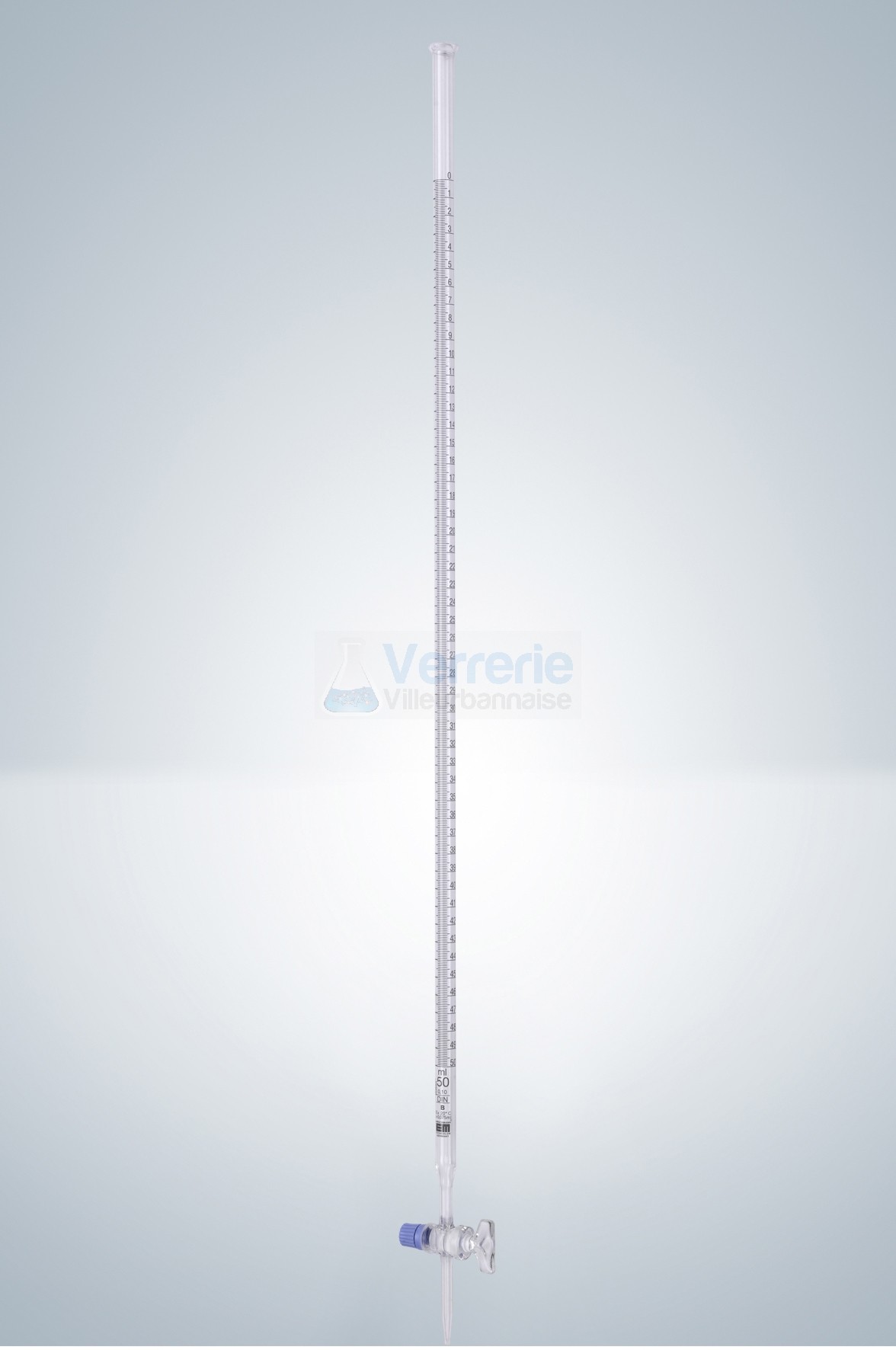 - - Burette 10ml subdivision :0,02 ml classe B robinet droit cle verre graduation noire DIN EN ISO 385 v