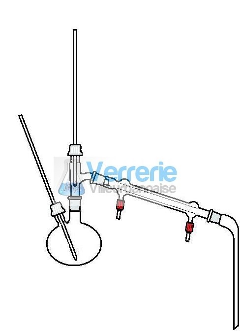 - - Glass apparatus for distillation double thermometer plug compound:: Boiling flask two necks 500ml 24