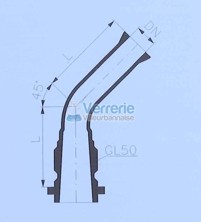 Adaptateur coude 45 degre pas de vis GL50 DN 25 RK longueur L : 100mm verre industriel