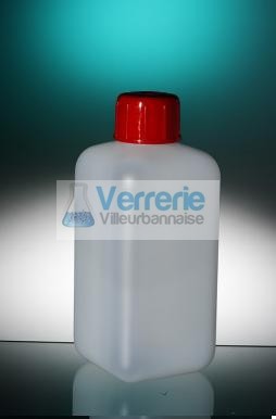 - - Flacon carre 250ml Polyethylene haute densité PEHD, forme cubique, dimensions du corps du flacon 55x